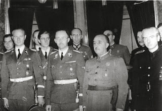 17.-Mussolini, Hitler, Pio XII y Juan de Borbon felicitando a Franco